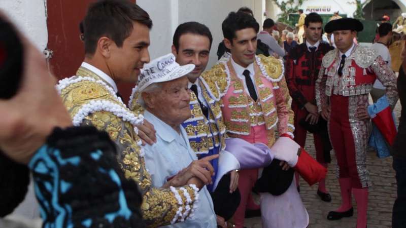 Cano con varios maestros del toreo.