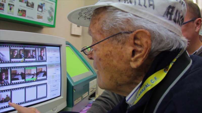 Cano viendo imágenes de su documental.EL DOCUMENTAL
