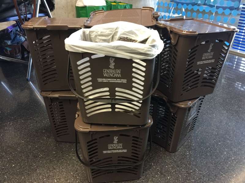 recogida de la materia orgánica y cubos de reciclaje para incentivar