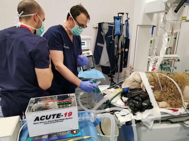 Validación en modelo animal del prototipo, en el Hospital Clínico Veterinario de la Universidad CEU Cardenal Herrera de Valencia.El primer prototipo de ventilador de turbina bi-nivel para la ventilación controlada por presión en pacientes afectados por Covid-19, el Acute-19, desarrollado por investigadores españoles, acaba de superar con éxito la fase de validación en un modelo animal en la Universidad CEU Cardenal Herrera de Valencia. Este último paso es imprescindible para su uso en humanos, por lo que podrá iniciarse muy pronto la terapia en pacientes que requieren ventilación mecánica por complicaciones respiratorias a causa de la enfermedad Covid-19.