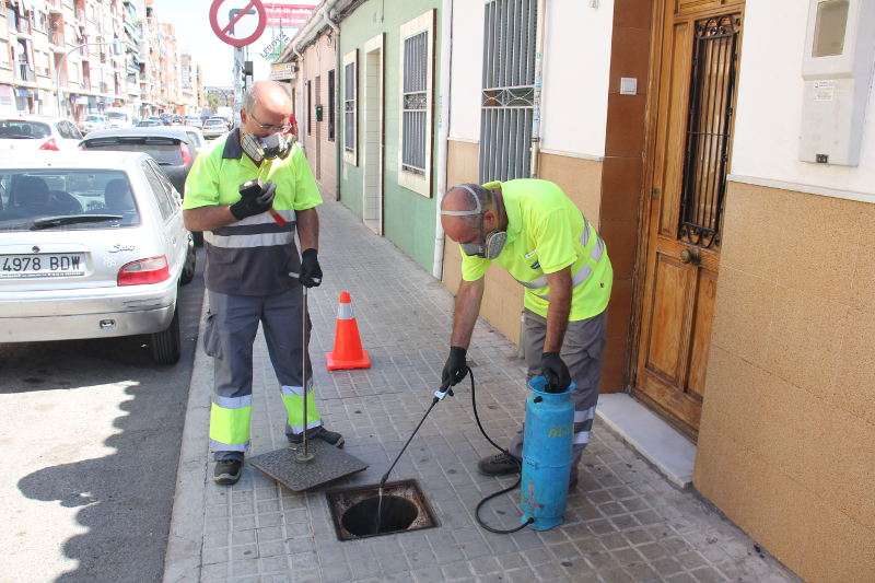 Operarios de Torrent fumigando alcantarillado. EPDADurante