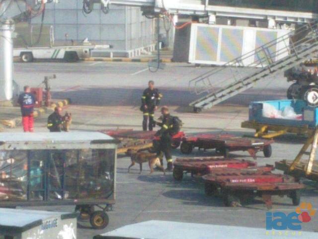 Salvo pequeños retrasos, los voluntarios han informado de que el viaje se ha producido según lo previsto y, además, han enviado una serie de imágenes en las que aparecen junto a los perros de rescate en las pistas del aeropuerto.