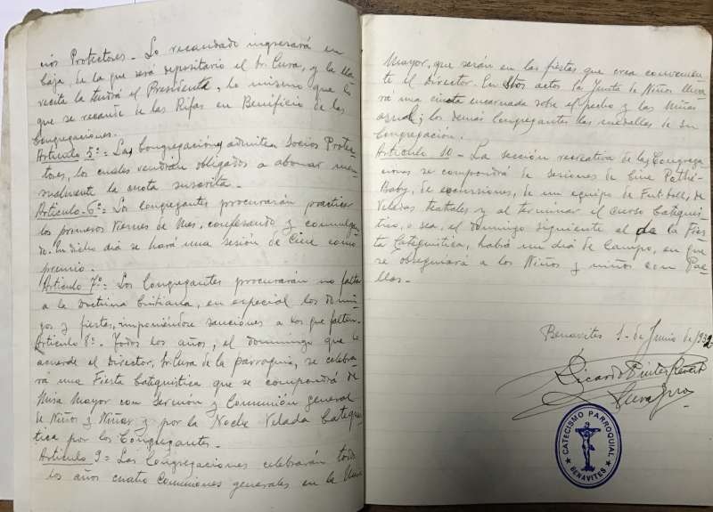 listados, balances económicos, inscripciones en el Catecismo,