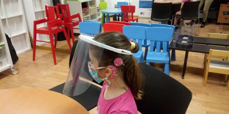 En la imagen, una escolar con mascarilla y pantalla, en una imagen facilitada por el Comité Español de Representantes de Personas con Discapacidad Comunitat Valenciana (CERMI).