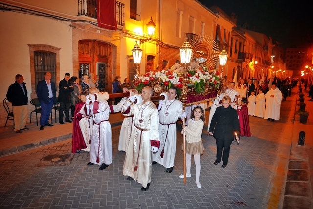 La procesión partió de la parroquia de San Juan Bautista, y recorrió las calles Mayor, Cervantes, Cura Catalá, Centro, plaza del Castell, Sagrario y Obispo Soler, para finalizar en la plaza de la Iglesia