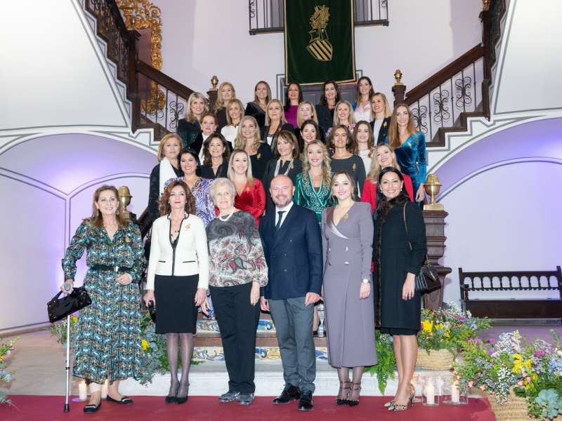 La corporació reunix en un acte inèdit en el seu Saló de Respecte a 32 dones que han sigut ambaixadores de la ciutat i les Falles en els últims anys i les obsequia amb una reproducció de la ‘Cadira d’Or’