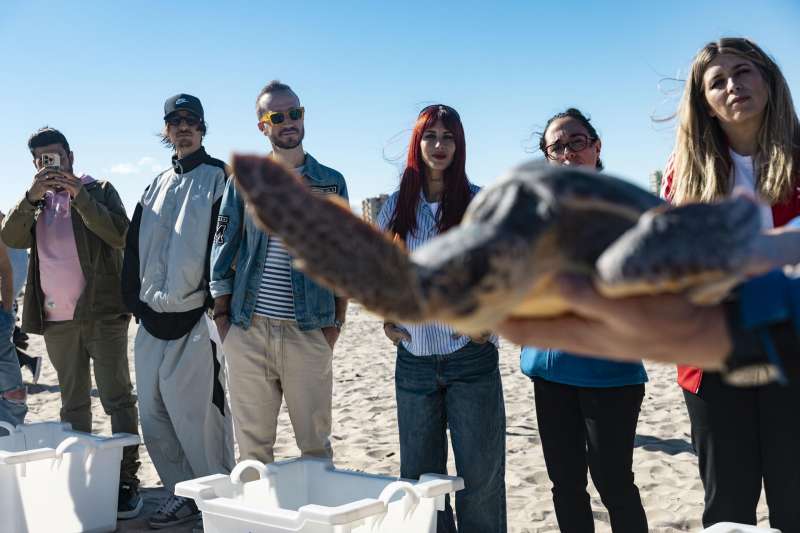 Danny Ocean, Vicco, Bombai, Chiara Oliver y Enol participan en la suelta de tortugas rehabilitadas por la Fundación Oceanogràfic dentro de la iniciativa ‘Juntos X El Mar’