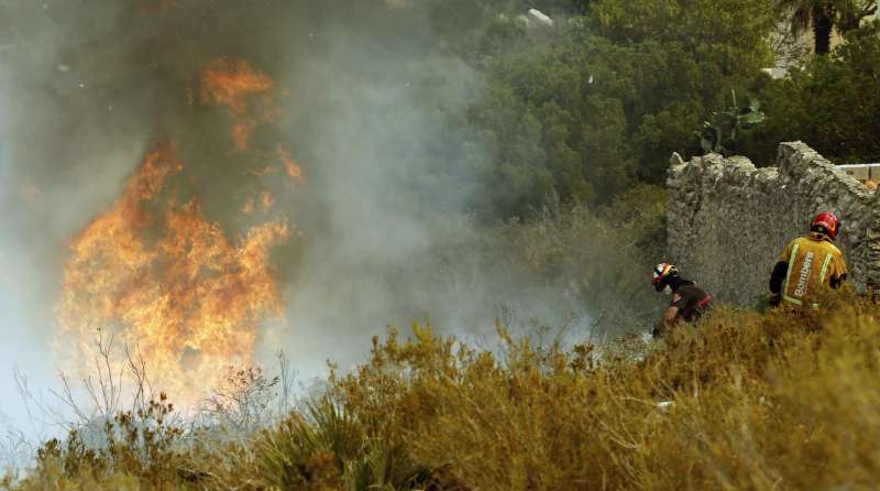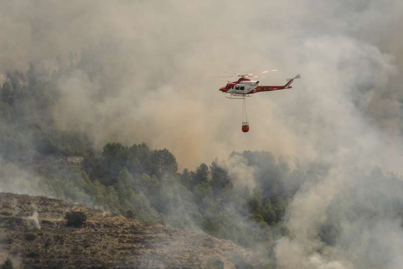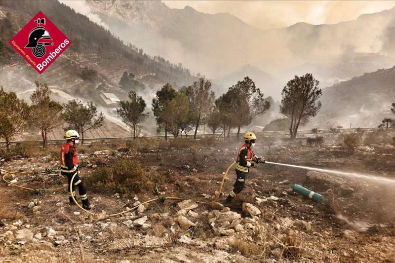 Las altas temperaturas, la orografía y la masa forestal complican la extinción del incendio de Tárbena