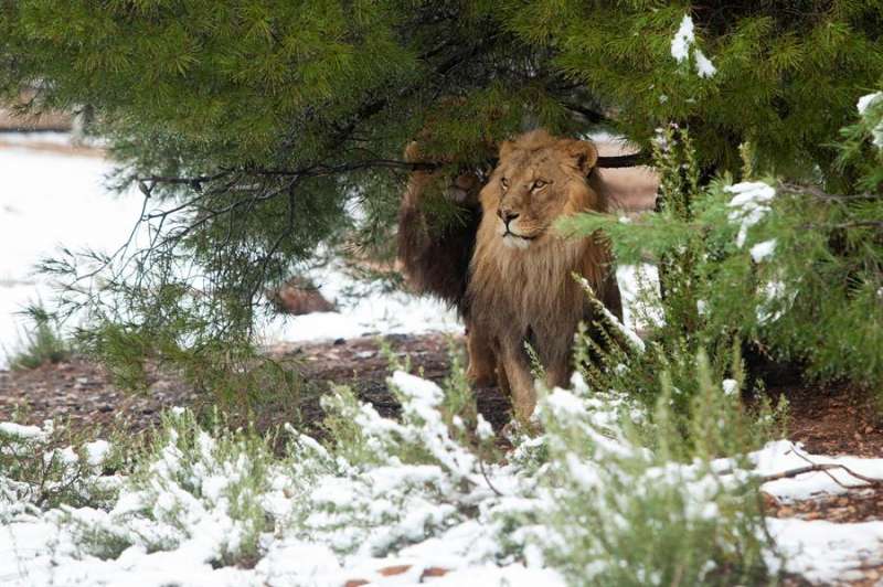 Los tigres y leones del AAP Primadomus de Villena disfrutan de la nieve en el centro de rescate