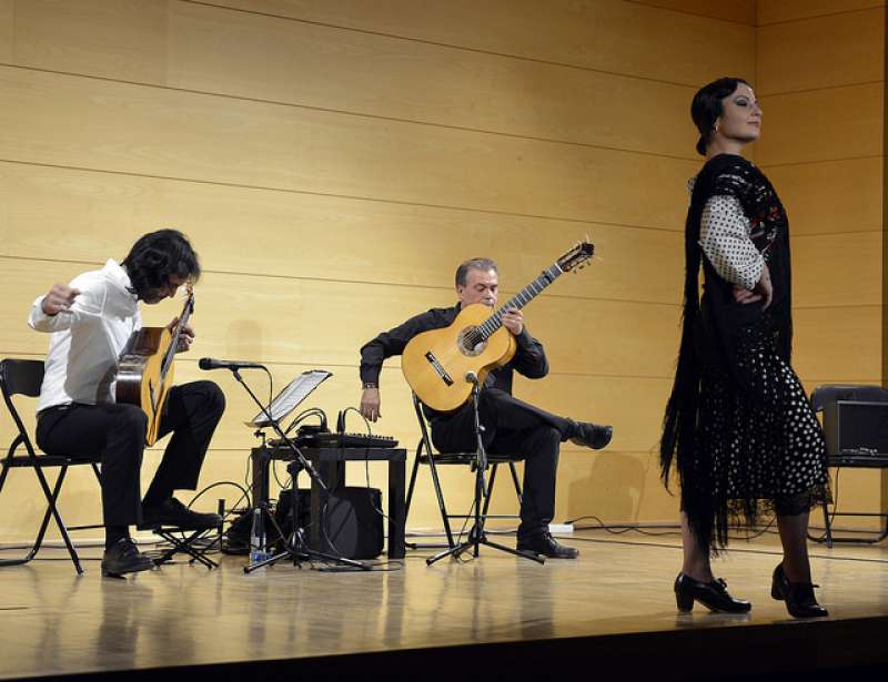 La bailaora Irene de la Rosa ofrece en Fundación Bancaja una actuación de flamenco acompañada por los guitarristas Toni Cotolí y Javier Zamora