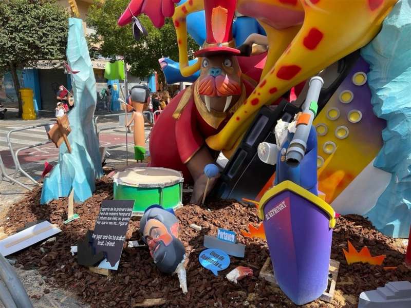 Un hombre de unos 30 años, que estaba bebido e iba con una botella en la mano, ha destrozado esta madrugada dos escenas y varios ninots de la falla de la comisión Ramiro de Maeztu-Los Leones, en el barrio valenciano de Ayora