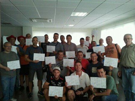 Tres dotaciones de bomberos junto con un vehículo de apoyo, Protección Civil, Guardia Civil, Policía Local, Policía Nacional y un equipo del SAMU han participado en un simulacro de incendio organizado en Bayer CropScience
