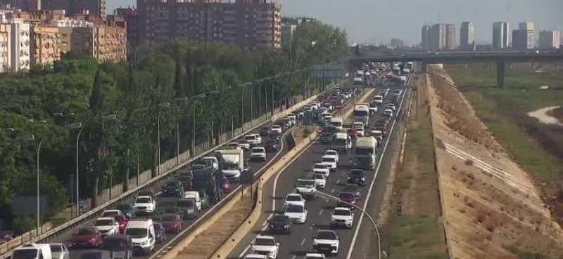 Tráfico denso en los accesos a Valencia por la V-30 y la CV-30 desde primera hora de hoy jueves 2 de abril