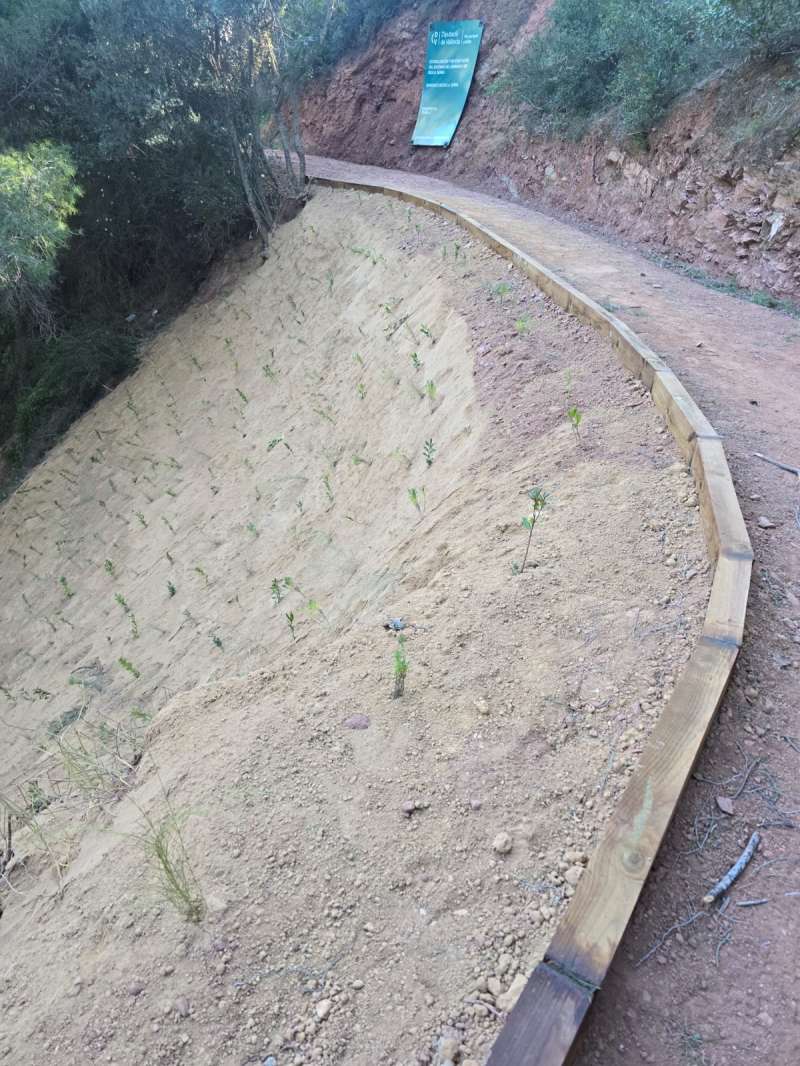 Les obres amplien el camí afectat pel despreniment del talús i incorporen solucions de bioenginyeria amb plantació d’espècies autòctones