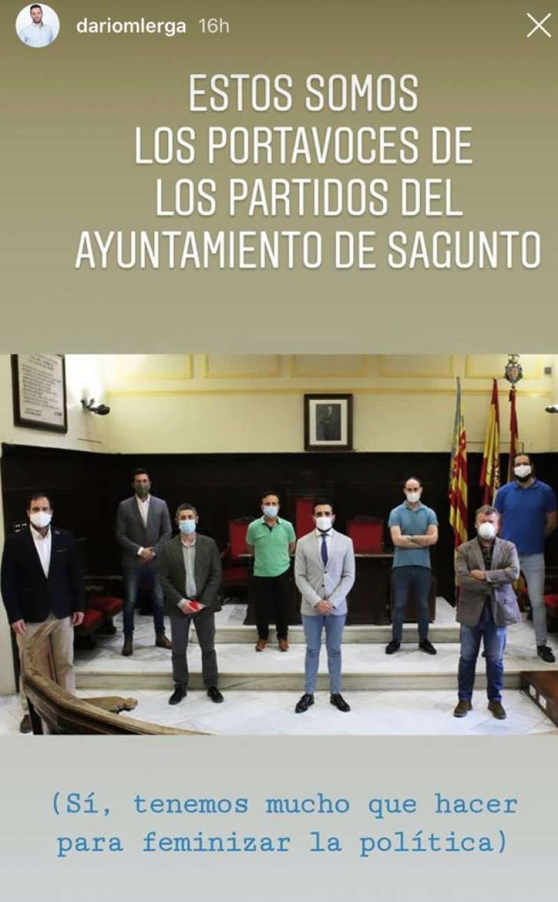 El alcalde de Sagunt reivindica la feminización de la política mediante una fotografía que muestra a los portavoces del Ayuntamiento, todos hombres