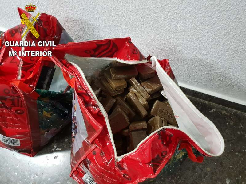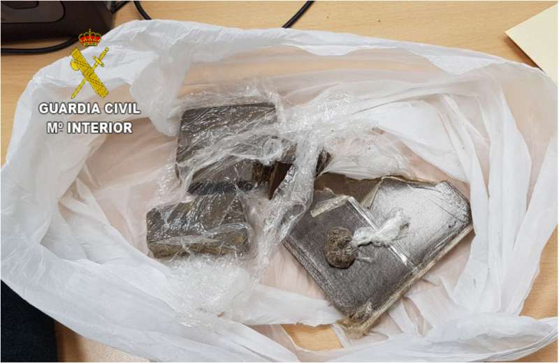 La Policía realizó una inspección ante las sospechas, localizando un paquete oculto por dentro del pantalón, con un cierre hermético, que contenía varios trozos de sustancia vegetal hachís, con sus respectivos trozos de papel albal, con un pesaje de 12,8 gramos, así como una báscula y 126 euros fraccionados en billetes y monedas