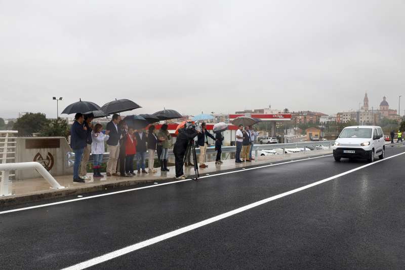 La diputada de Carreteres, Reme Mazzolari i l'alcalde de Cheste, José Morell, assistixen a l'obertura operativa del denominat 'Pont de la Memòria' a falta de culminar l'obra a l'entorn del barranc de Poyo
