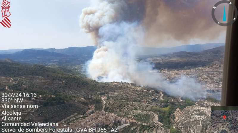 El fuego, declarado a primera hora de la tarde en la zona de Jovades, ha obligado a desplegar a bomberos de las provincias de Valencia y Alicante