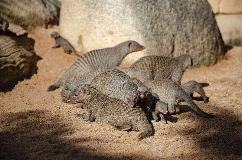 Nuevas crías de mangosta rayada ya pueden verse estos días de 'veroño' en BIOPARC València
