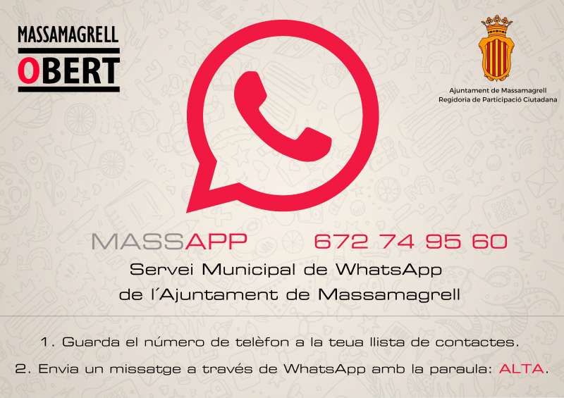 "MassApp", el servicio de wathsapp de Massamagrell, llega a los 3333 subscriptores