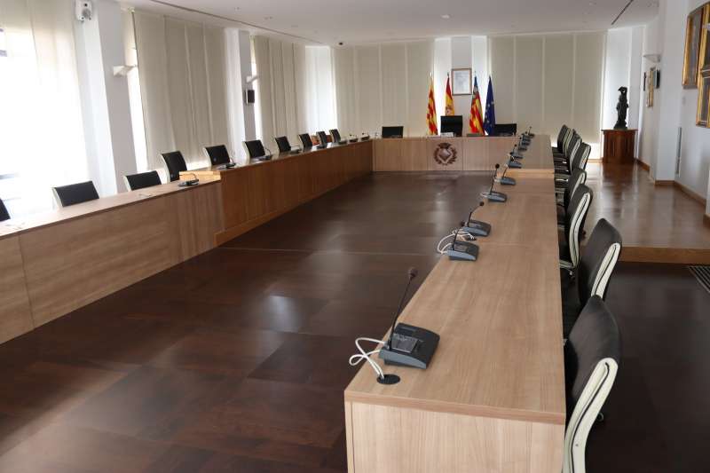 La bancada del saló de plens s'ha adaptat per a complir els protocols de prevenció / Aquest espai albergarà també les comissions informatives, les juntes de portaveus i les juntes de govern