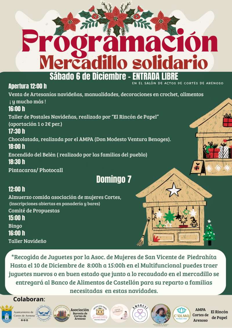 Cortes de Arenoso celebra su tradicional Mercadillo Solidario de Navidad este 6 de diciembre