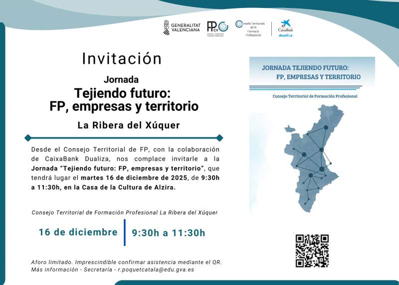 La Ribera del Xúquer anuncia la jornada "Teixint Futur: FP, empreses i territori"