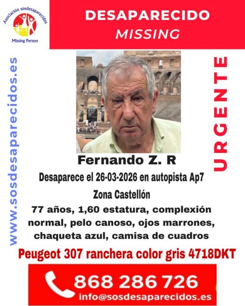 Fernando Z. R. fue visto por última vez el 26 de marzo y podría desplazarse en un Peugeot 307 gris